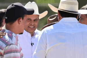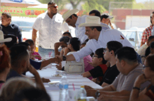 “Hoy celebramos la historia, raices y legado de quienes lucharon por este ejido, juntos vamos a seguir construyendo su futuro y progreso” dijo a mujeres y hombres de campo que, al igual que Hugo Reséndez Silva, secretario del Ayuntamiento, le dieron calida bienvenida.