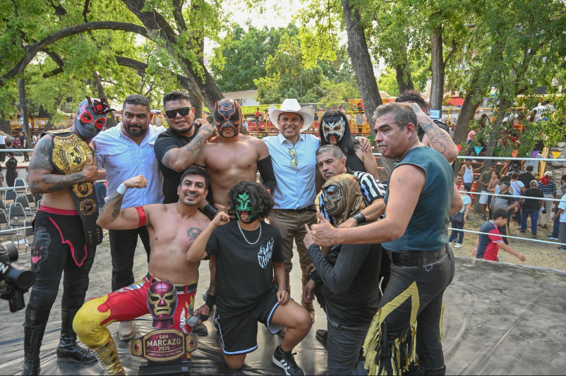 Cd. Victoria, 30 de marzo de 2026. – Con buena música, ambiente familiar y gran espectáculo de lucha libre, arrancó este lunes el plan vacacional San Marcazo 2026 del gobierno municipal con la presencia del alcalde de Victoria Eduardo Gattás Báez y su esposa, presidenta del DIF, Lucy de Gattás.