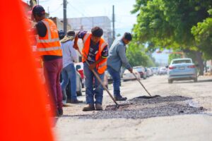 Desde temprana hora, personal operativo inició labores de bacheo en las avenidas Hombres Ilustres, José Sulaimán Chagnón y calle UAT, así como en Zeferino Fajardo al libramiento Naciones Unidas, boulevard Emilio Portes Gil y calle Olivia Ramírez, del 10 hasta el 21.