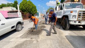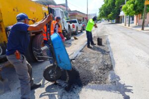 Desde temprana hora, personal operativo inició labores de bacheo en las avenidas Hombres Ilustres, José Sulaimán Chagnón y calle UAT, así como en Zeferino Fajardo al libramiento Naciones Unidas, boulevard Emilio Portes Gil y calle Olivia Ramírez, del 10 hasta el 21.