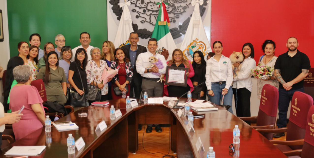 Más conocida como Mia Fressy, la ciudadana victorense acudió a la quincuagésima séptima sesión pública a invitación de la regidora Carmen Serna Mercado para recibir el merecido reconocimiento que el otorga el cabildo de Victoria por su gran labor de respeto y bienestar hacia los animales.