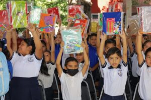 Ciudad Victoria, Tam., 5 de octubre de 2025.– Con la entrega de 3,500 kits de útiles escolares a alumnas y alumnos de educación básica, la presidenta del Sistema DIF Victoria, Lucy de Gattás, y el alcalde Eduardo Gattás Báez concluyeron la edición 2025 del programa “Pasos por la Educación”, que en cuatro años ha beneficiado a más de 8,500 niñas y niños del municipio.