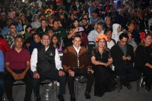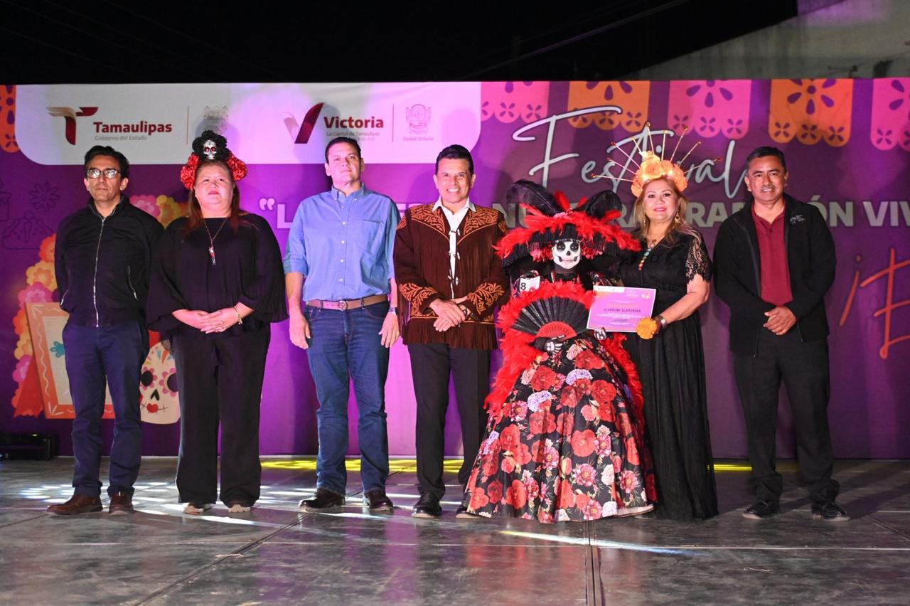 El alcalde Eduardo Gattás Báez y la presidenta del DIF Victoria, Lucy de Gattás, encabezaron esta celebración que reunió a familias, alumnos, artistas y grupos culturales que participaron con altares, catrinas vivientes y el recorrido “Ecos de la Historia”.