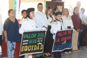 Acompañado por su esposa Lucy de Gattás, autoridades educativas y representantes de la comunidad escolar, el alcalde presidió los honores a la bandera y reiteró el compromiso del Gobierno Municipal de seguir invirtiendo en infraestructura educativa que fortalezca el desarrollo académico y social de la niñez victorense.