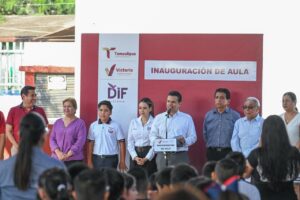 Durante el acto inaugural, previo al corte del listón, Gattás Báez destacó que su administración, junto a su esposa Lucy de Gattás y en coordinación con el gobernador Américo Villarreal Anaya, trabaja hombro a hombro para fortalecer la infraestructura educativa y lograr que Victoria tenga escuelas más fuertes, modernas y mejor equipadas.