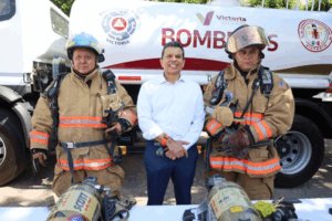 Cd. Victoria, 7 de abril de 2026. – El presidente municipal de Victoria, Eduardo Gattás Báez, entregó este día equipo especializado y camión cisterna a la Coordinación de Protección Civil y Bomberos para la atención rápida y eficiente de emergencias o siniestros que pongan en riesgo a la población.