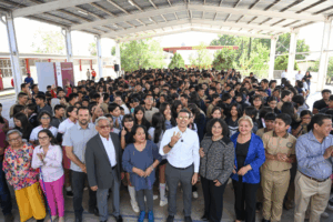A nombre de los 3,140 alumnos beneficiados, Luis Silva Sarmiento, agradeció la donación de la cisterna de 5000 litros y reconoció el apoyo del alcalde Gattás Báez a la educación, renglón en el que desde el inicio de su administración ha entregado 157 obras similares a igual número de escuelas.