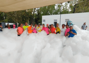 A través de la Secretaria de Bienestar Social y con organización técnica del Departamento del Deporte y la Juventud, numeroso grupo de deportistas experimenta en la espuma artificial.