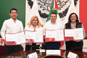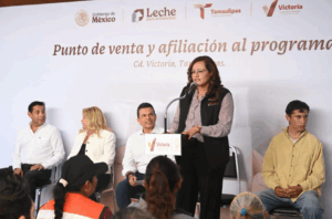 Cd. Victoria, 26 de febrero de 2026.- Garantizando el acceso a programas que impactan directamente en la nutrición y economía de los victorenses, el alcalde Eduardo Gattás Báez firmó convenio de colaboración con el programa “leche para el bienestar”, inaugurando en presidencia punto de venta y afiliación.