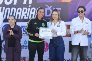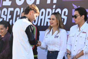 Cd. Victoria, Tam., 4 de noviembre de 2025.– Con la participación de más de 300 estudiantes, la presidenta del Sistema DIF Victoria, Lucy de Gattás, dio inicio a la 1.ª Copa Unión Intersecundarias 2025, durante una ceremonia realizada en la Unidad Deportiva Revolución Verde.