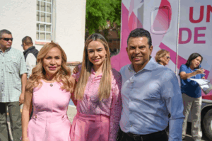 En la apertura de la unidad móvil instalada en la explanada del DIF, participaron la dirigente del Sindicato del Municipio, Laura Limón García; Dr. José Flores Romero, Jefe de Programas Preventivos del IMSS; y Zelenny Rodríguez, directora de la Jurisdicción Sanitaria No. 1.