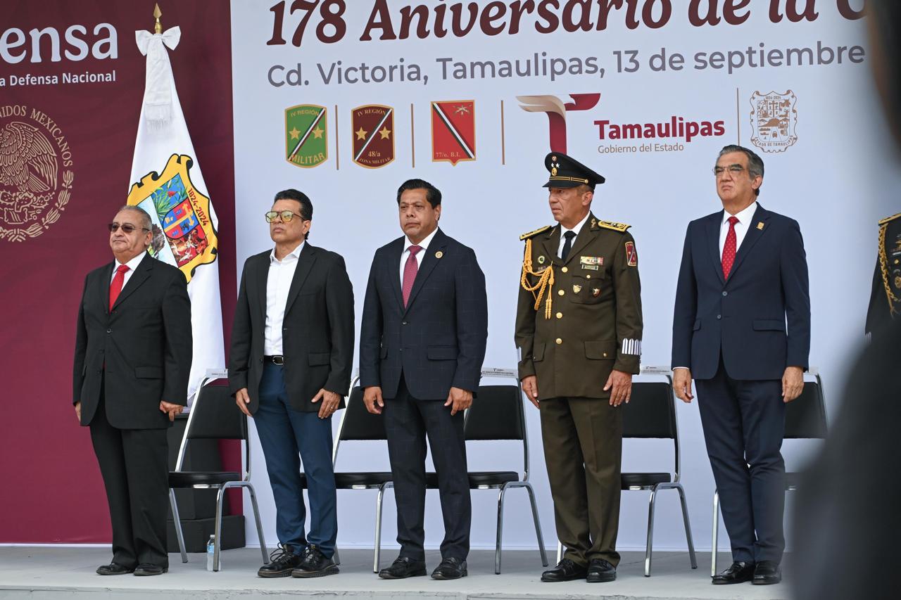 Ciudad Victoria, Tamaulipas, 13 de septiembre de 2025. – En el marco del 178 aniversario de la Gesta Heroica de los Niños Héroes de Chapultepec, el gobernador del Estado, Dr. Américo Villarreal Anaya, y el alcalde de Victoria, Eduardo Gattás Báez, encabezaron la ceremonia cívico-militar realizada en el paseo Pedro José Méndez de la capital tamaulipeca.
