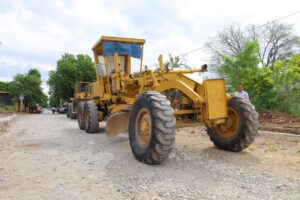 Acompañado por su esposa Lucy de Gattás, síndicos, regidores y secretarios del Ayuntamiento, el presidente municipal dio el banderazo de inicio a los trabajos de desbroce y nivelación, que contemplan 747 metros cuadrados de pavimento con concreto hidráulico.