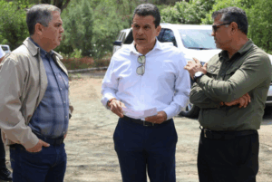 Cd. Victoria, 8 de abril de 2026. – En gira de trabajo, el alcalde de Victoria, Eduardo Gattás Báez, visitó la planta de tratamiento de agua La Peñita donde supervisó la construcción del desarenador con filtro tipo “Y” para conexión a medidor parshall y tubería de bombeo.