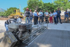 Cd. Victoria, 24 de octubre 2025. – En compañía de regidores del Cabildo, el presidente municipal de Victoria, Eduardo Gattás Báez, supervisó el avance de obra de pavimentación con concreto hidráulico en la colonia Sierra Madre.