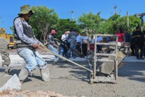 Al recorrer la calle Margarita, dónde se asfalta una superficie de 747.90 metros cuadrados, verificó la calidad de la obra que en breve beneficiará a 5,671 habitantes que residen entre las calles Mariano García Sela y Thomas Elva Edison.