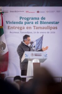 Reynosa, Tamaulipas, 24 de enero de 2026.- La presidenta de México, Claudia Sheinbaum Pardo refrendó todo el respaldo del Gobierno Federal a Tamaulipas, al anunciar una amplia serie de apoyos en vivienda, carreteras, salud, obras de infraestructura hidráulica y más de 23,000 millones de pesos en inversión de los programas federales que beneficiarán a 816,000 tamaulipecos y tamaulipecas.