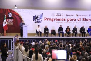 Reynosa, Tamaulipas, 24 de enero de 2026.- La presidenta de México, Claudia Sheinbaum Pardo refrendó todo el respaldo del Gobierno Federal a Tamaulipas, al anunciar una amplia serie de apoyos en vivienda, carreteras, salud, obras de infraestructura hidráulica y más de 23,000 millones de pesos en inversión de los programas federales que beneficiarán a 816,000 tamaulipecos y tamaulipecas.