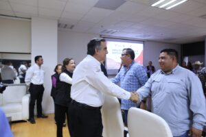 En el encuentro asistieron también Luisa Eugenia Manautou Galván, secretaria de Administración; Carlos Ramírez González, subsecretario de Egresos; Mariana Álvarez Quero, subsecretaria para la Pequeña y Mediana Empresa; Guadalupe Arlem González Olazarán, directora general de Fondo Tamaulipas; Cuauhtémoc Amaya García, subsecretario de Desarrollo Pecuario y Forestal; y Celene Ramírez García, directora de Fomento Forestal.