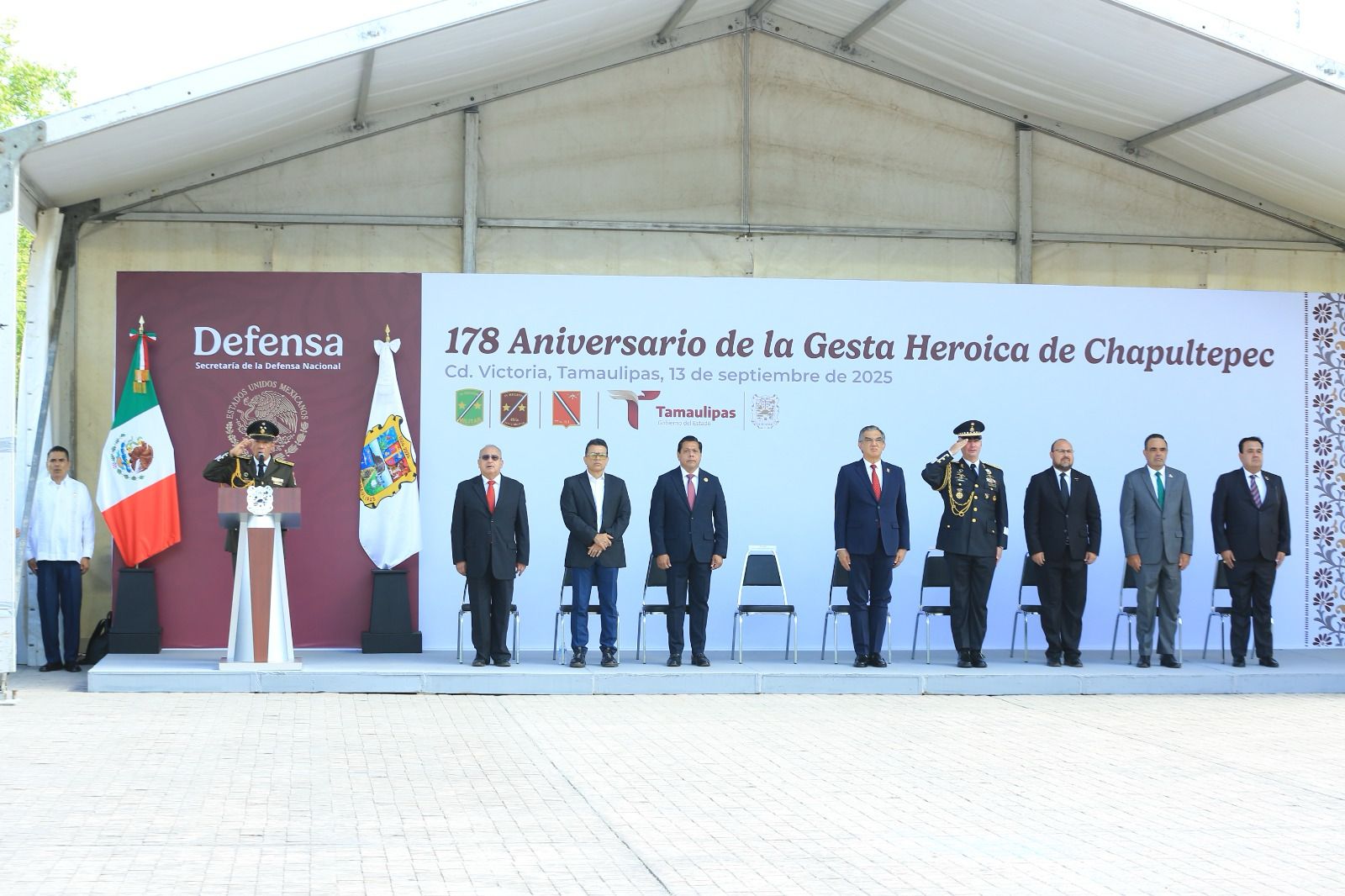 Ciudad Victoria, Tamaulipas, 13 de septiembre de 2025. – En el marco del 178 aniversario de la Gesta Heroica de los Niños Héroes de Chapultepec, el gobernador Américo Villarreal Anaya encabezó la ceremonia cívico-militar realizada en el paseo Pedro J. Méndez de la capital tamaulipeca.