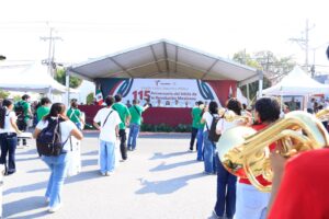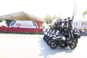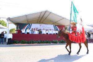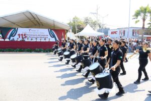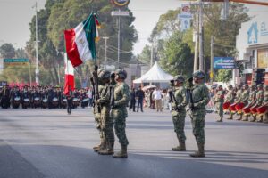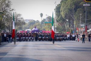 Ante la algarabía de miles de familias que se dieron cita para aplaudir el paso de los contingentes, también se sumaron 20 bandas de guerra, 54 conscriptos del Servicio Militar Nacional, 400 elementos de Protección Civil Estatal, 40 elementos de la Cruz Roja Mexicana y 13 cabalgantes.