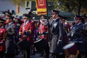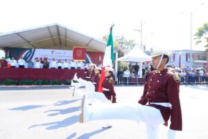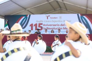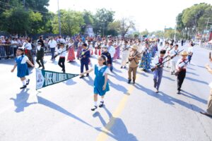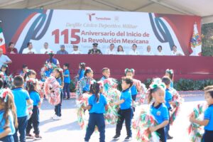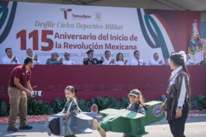 Ciudad Victoria, Tamaulipas 20 de noviembre de 2025.- Con la presentación, por primera vez, de una banda de guerra monumental integrada por 500 alumnos y alumnas de diferentes municipios, este jueves se conmemoró el desfile cívico, deportivo y militar, con la entusiasta participación de estudiantes, jóvenes, niñas y niños, en conmemoración del 115 aniversario del inicio de la Revolución Mexicana, presidido por el gobernador Américo Villarreal Anaya.
