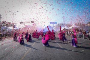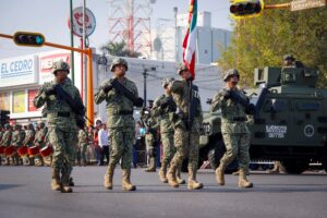 En un marco lleno de folclor, música tradicional mexicana, majestuosos vestuarios y mucho colorido, con representaciones de los caudillos revolucionarios, bailables y tablas gimnásticas, también desfilaron a lo largo del bulevar Tamaulipas 255 integrantes del Ejército Mexicano, Fuerza Aérea y Guardia Nacional, y 724 elementos de la Guardia Estatal, haciendo un total de más de 3,500 participantes.