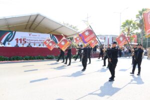 De acuerdo con el parte del comandante de la columna del desfile, Francisco Arroyo Quiterio, en el evento, que se prolongó por casi tres horas, en un ambiente de fiesta cívica y paz, destacó la participación de 1,950 estudiantes de 22 instituciones educativas, desde nivel preescolar hasta universidades.