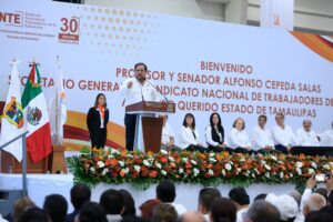 “Fue posible porque un hombre demócrata, valiente, libertario, como el gobernador Américo Villarreal, la sancionó y concluyó su proceso legislativo firmando el decreto y publicándolo en el periódico del Estado. Gracias, señor gobernador, a nombre de todas y todos los trabajadores al servicio del Estado, de las maestras y los maestros y, desde luego, del senador Alfonso Cepeda Salas”, mencionó.