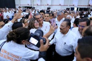 En el Polyforum con más de tres mil profesores, el gobernador Américo Villarreal Anaya hizo un reconocimiento a la fortaleza del Sindicato Nacional de Trabajadores de la Educación (SNTE), un gremio sindical -dijo- comprometido con la educación de nuestro país, y convocó a las y los maestros de Tamaulipas a seguir trabajando juntos por la construcción de una mejor sociedad.