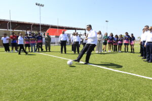 En la UTMAR, el gobernador entregó la construcción de la techumbre, un laboratorio de procesamiento de productos pesqueros y un campo de fútbol 7 con alumbrado, cerco, bancas y gradas.