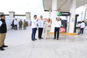 Al término de este evento, el gobernador, acompañado por el secretario de Desarrollo Energético, Walter Julián Ángel Jiménez, visitó la Gasolinera del Pueblo, una estación de venta de combustible con la marca propia del Gobierno del Estado, y constató la atención que se brinda al público de esta región.