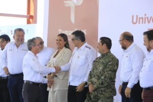 En este plantel y luego de la bienvenida a cargo del rector Guadalupe Acosta Villarreal y del alumno Rubén Avalos Alfaro, quienes le agradecieron todo el apoyo para consolidar la transformación de esta universidad, el gobernador convocó a las y los universitarios a que comanden las oportunidades de desarrollo y crecimiento de la región y que la UTMAR siga siendo un centro de investigación para la acuacultura, las especies marinas y el desarrollo turístico, cuidando y protegiendo el medio ambiente.