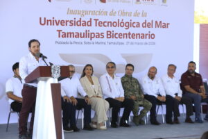 Soto la Marina, Tamaulipas, 27 de marzo de 2026.- El modelo humanista para la educación que impulsan los gobiernos de la transformación contribuye para tener cada vez una mejor sociedad, afirmó el gobernador Américo Villarreal Anaya al entregar obras por más de 19 millones de pesos en la Universidad Tecnológica del Mar Tamaulipas Bicentenario.
