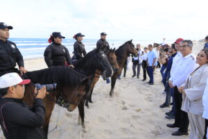Durante su recorrido, el gobernador también constató el operativo de la policía montada, quienes hacen su recorrido a la orilla de la playa, y recibió una explicación del secretario de Seguridad Pública, Carlos Arturo Pancardo.