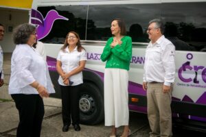 La directora general del organismo estatal, Patricia Lara Ayala, encabezó la entrega oficial de la unidad al alcalde René Lara Cisneros y a la presidenta del DIF municipal, Macarena Inurrigarro Garza.