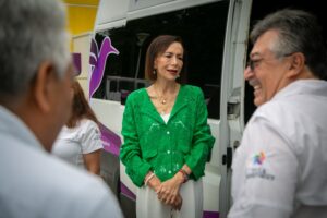 La directora general del organismo estatal, Patricia Lara Ayala, encabezó la entrega oficial de la unidad al alcalde René Lara Cisneros y a la presidenta del DIF municipal, Macarena Inurrigarro Garza.