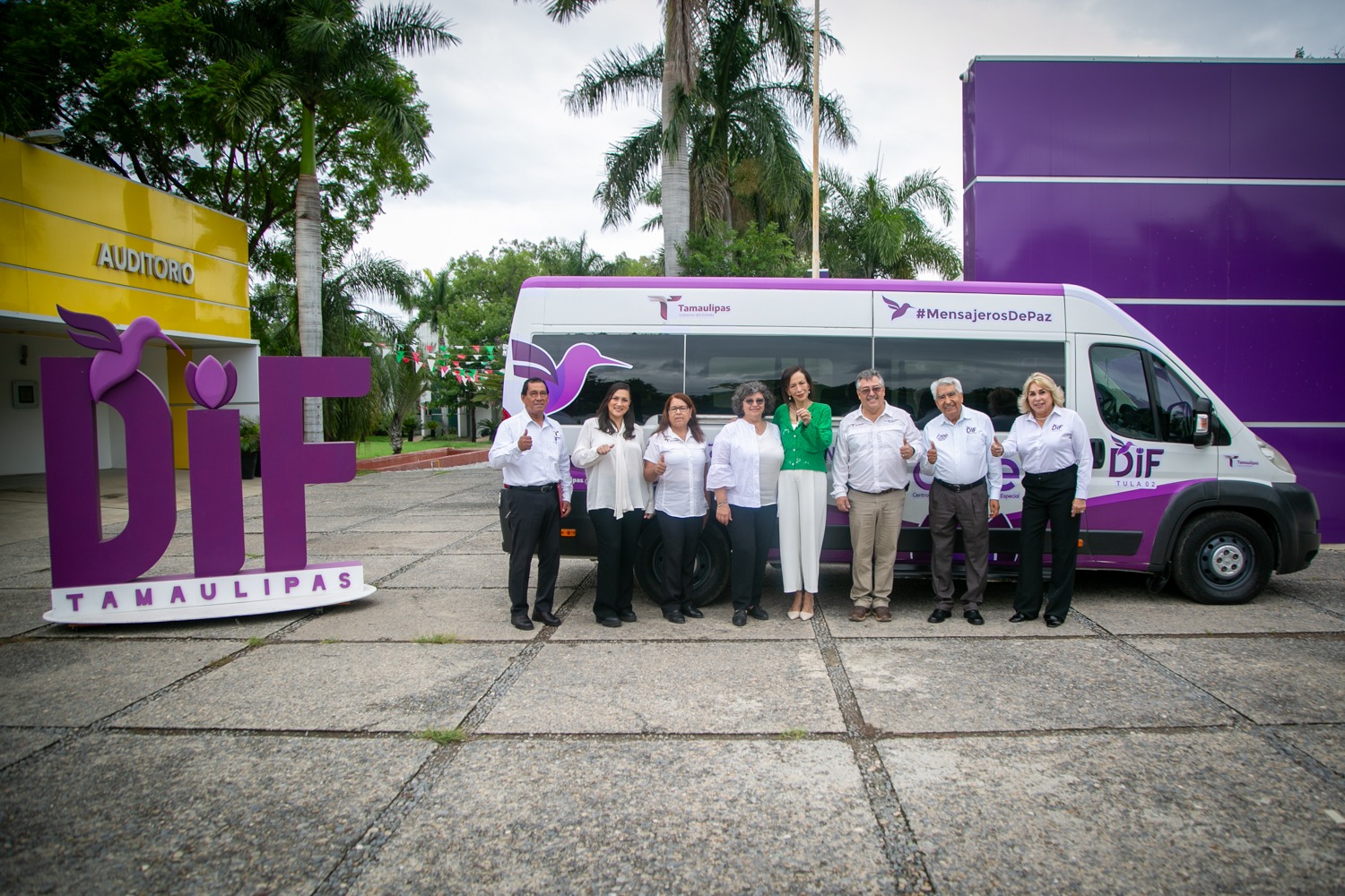 Ciudad Victoria, Tamaulipas; 9 de septiembre de 2025. – El Sistema DIF Tamaulipas, que preside la doctora María de Villarreal, entregó una nueva unidad de transporte adaptado para la ruta “Lazos de Esperanza” en el municipio de Tula, con el propósito de ampliar la atención a personas con discapacidad que requieren este servicio.