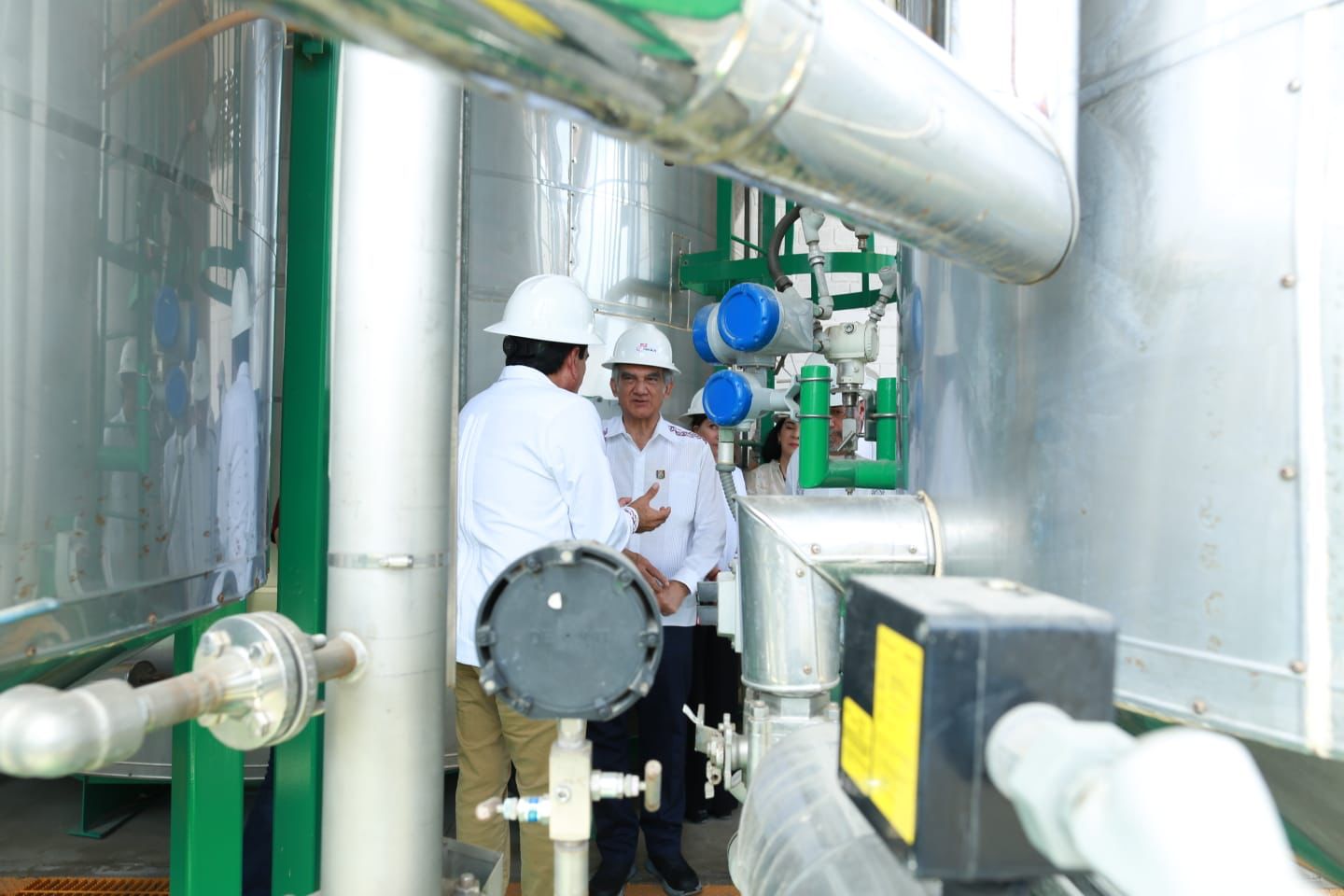 Durante la visita, el mandatario estatal y el subsecretario federal estuvieron acompañados por el director general del Grupo Industrial Águila, Juan Ruperto Rodríguez, quien ofreció una explicación detallada sobre el funcionamiento de la planta, la cual opera bajo un proceso de pirólisis para convertir desechos plásticos en cinco tipos de combustibles: gasolina, diésel, queroseno, parafina y gas, proceso del cual fueron testigos.