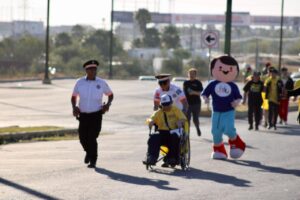 Reynosa, Tamaulipas, 15 de febrero de 2026.- En el marco del Día Internacional contra el Cáncer Infantil, personal de la Guardia Estatal y Dirección de Tránsito Estatal de la Secretaría de Seguridad Pública de Tamaulipas (SSPT) convivieron con familias reynosenses en la carrera “Pequeños Héroes” 2026.