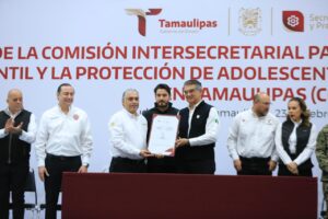 Durante la ceremonia cívica de honores en el Polyforum de esta capital, el gobernador, junto con el secretario del Trabajo, Gerardo Illoldi, y el titular de la Oficina de la Representación Federal del Trabajo en Tamaulipas, Iván Karim Rocha Picazo, firmó el acuerdo que da marco legal y sustento a esta comisión, que representa un mecanismo permanente de coordinación entre dependencias estatales, sectores sociales y la iniciativa privada para atender de manera integral el fenómeno del trabajo infantil, desde un enfoque de derechos humanos y bajo el principio del interés superior de la niñez.
