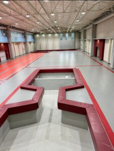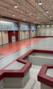 La etapa de remodelación del área ya concluyó y este sábado fueron recibidos los aparatos especializados para la práctica de gimnasia artística, como colchones, piso, anillos, trampolín, mesa de salto, barras paralelas, asimétricas y fija, así como vigas de equilibrio, y comenzó la instalación.