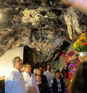 Posteriormente, el mandatario se trasladó al Santuario de la Virgen para convivir con habitantes de la comunidad, quienes agradecieron las obras de infraestructura y el impulso turístico que traerá esta construcción. También visitó la presa Pedro J. Méndez y la ex Hacienda de La Mesa, donde escuchó necesidades de productores rurales y autoridades municipales.