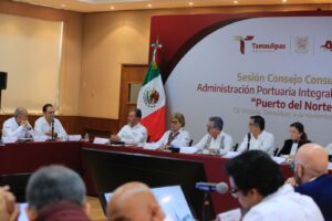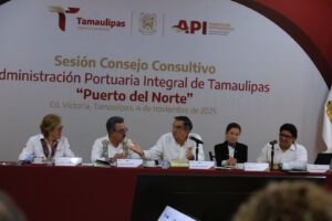 Ciudad Victoria, Tamaulipas, 04 de noviembre de 2025.- Al presidir la sesión del Consejo Consultivo de la Administración Portuaria Integral de Tamaulipas, Puerto del Norte, el gobernador Américo Villarreal Anaya reiteró su compromiso para apoyar las gestiones y las autorizaciones necesarias a fin de seguir impulsando este gran proyecto, que tiene una alta rentabilidad para el desarrollo nacional y que permitirá convertir a Tamaulipas en la principal frontera marítima del país.