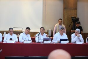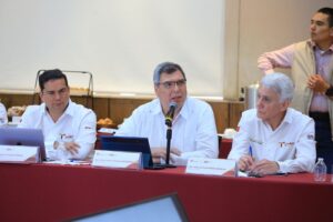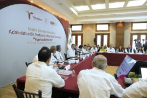 “Ustedes nos han aportado realmente en esta tarde, en estas horas de trabajo y las que nos han brindado también en sus reuniones y que me llegan a través de Gustavo (Guzmán), en algunas apreciaciones y tomas de decisiones por el Gobierno del Estado, pues ustedes nos aportan oro molido para nuestro puerto, que es también suyo, para el desarrollo de nuestra entidad y, desde luego, de nuestro país”, expresó.