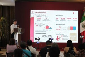 En materia de salud, dijo, se logró recuperar lo que estaba colapsado y avanzar hacia un sistema de salud universal y gratuito, tal y como lo establece el Artículo 4 Constitucional, que reconoce el derecho humano a la salud, además de registrar importantes avances como la inversión histórica de 4,300 MDP en infraestructura hospitalaria, la reducción en 25 puntos porcentuales de la muerte intrahospitalaria por infarto agudo al miocardio, el surtimiento garantizado al 100% de medicamentos oncológicos, la disminución de 76% en casos de dengue y el haber logrado, hasta el día de hoy, destacar como el único estado sin casos de sarampión en el presente año.