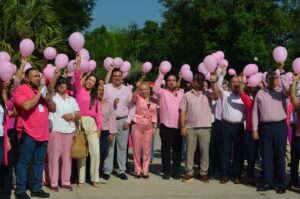Ciudad Victoria, Tamaulipas.– Mujeres y hombres que forman parte del sector educativo en el estado, así como docentes y estudiantes, se sumaron a las actividades realizadas por la Secretaría de Educación de Tamaulipas (SET) en el marco de octubre, Mes de la Concientización sobre el Cáncer de Mama.