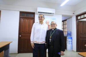 Luego de sostener una reunión privada para dar la bienvenida al nuevo obispo de la diócesis de Tampico, monseñor Margarito Salazar Cárdenas, y de encabezar la Mesa de Paz en las instalaciones de la Primera Zona Naval, en Madero, en la que participaron las y los integrantes de la Mesa Ciudadana de Seguridad y Justicia Zona Sur, el gobernador visitó la salinera ubicada en los terrenos de Puerto Industrial de Altamira.