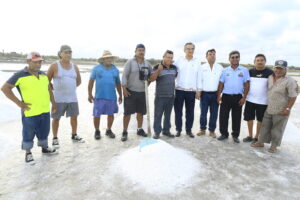 En este recorrido, el alcalde Armando Martínez expuso el avance de la primera etapa de la lavadora de sal, en la que se han invertido 2.8 millones de pesos, que permitirá incrementar la producción y generar mayor desarrollo y bienestar para los cooperativistas de la región.