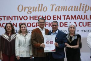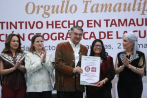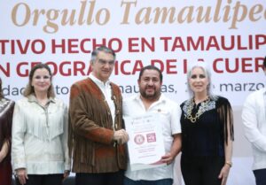 Asimismo, el mandatario agradeció al Instituto Mexicano de la Propiedad Industrial por el certificado que permitirá que la prenda más reconocida de nuestro orgullo e identidad, la Cuera Tamaulipeca, sea ahora un bien que pertenece a esta tierra y a las manos de los artesanos que las crean y las producen, además de lograr una oportunidad de desarrollo y crecimiento.